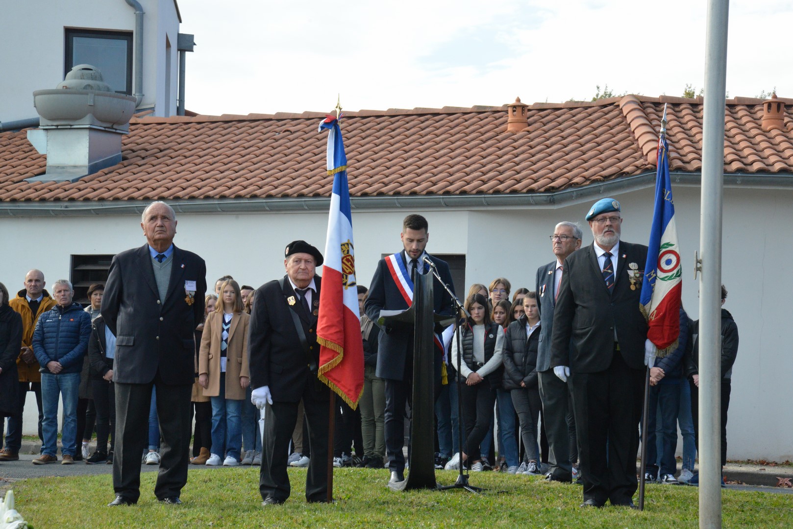 Rendre hommage et se souvenir de ceux qui, à la place qui a été la leur, ont fait ce que nous sommes aujourd’hui, est un devoir. Les Jeunes Sapeurs Pompiers et les élèves du collège Aliénor d’Aquitaine étaient également présents et ces derniers ont entonné La Marseillaise.