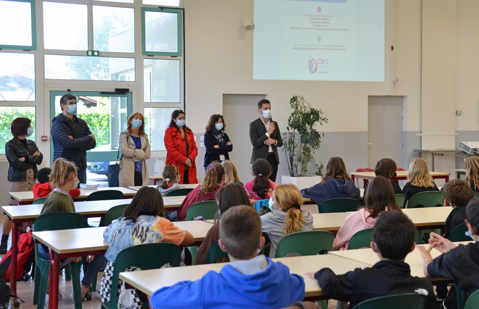Cette semaine, Jérôme Pescina, Maire de Martignas, accompagné des élues Isabelle Christina (1ère Adjointe), Corinne Lebeau (Adjointe à la vie scolaire), et Laurène Lelu Laurent (Conseillère municipale déléguée à la démocratie participative), vient à la rencontre des jeunes martignassais pour échanger avec eux sur ce projet. Les images témoignent déjà de leur intérêt certain !