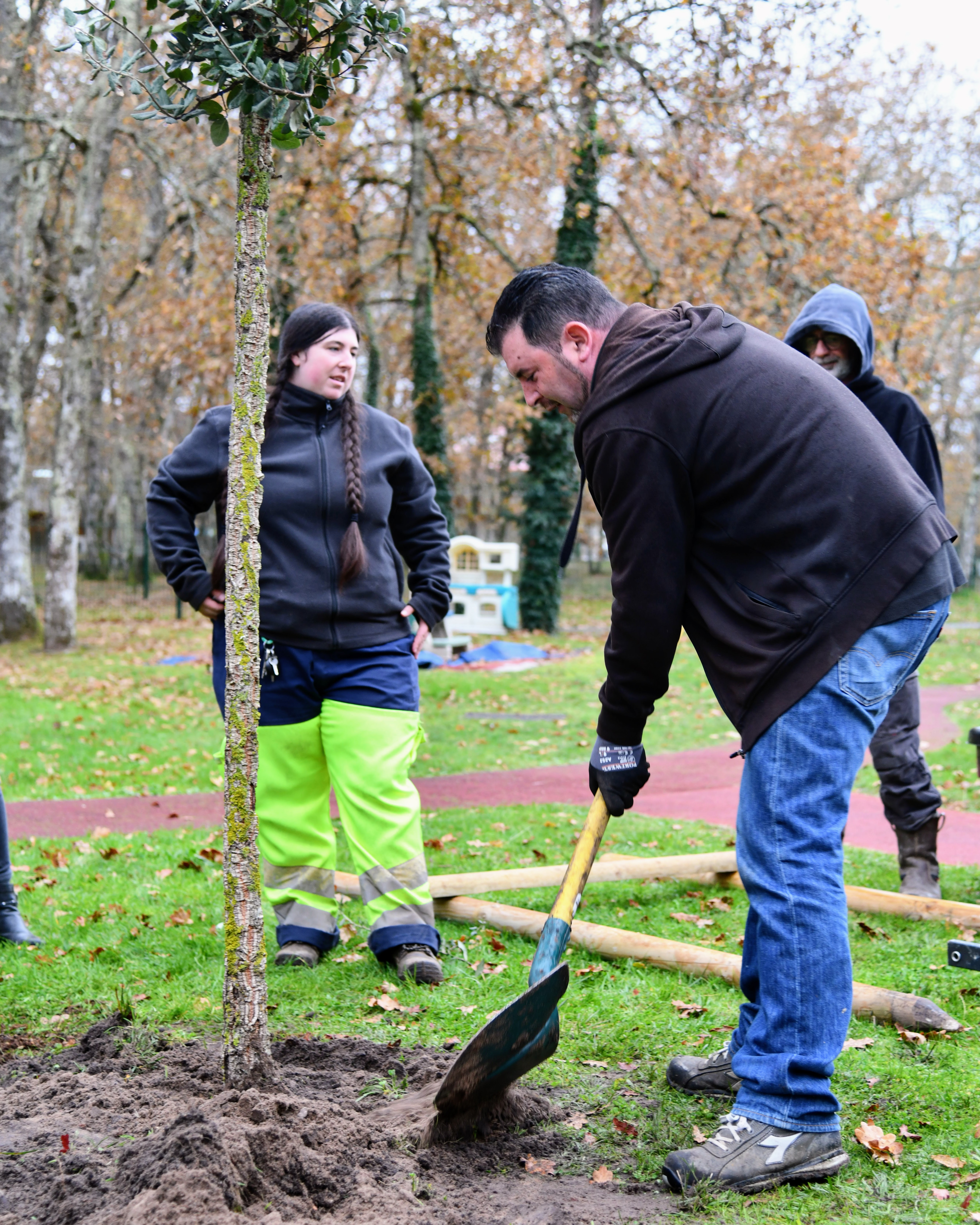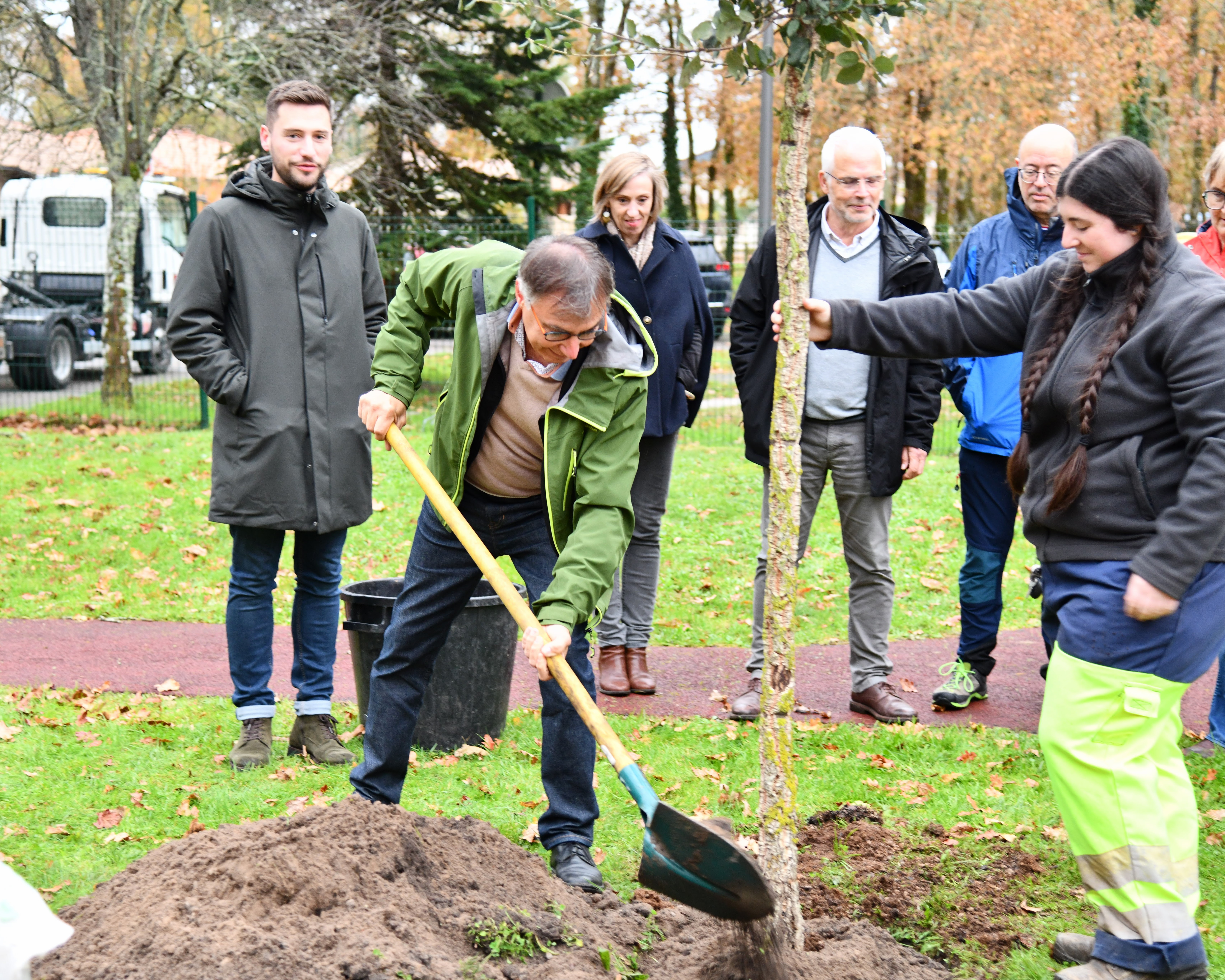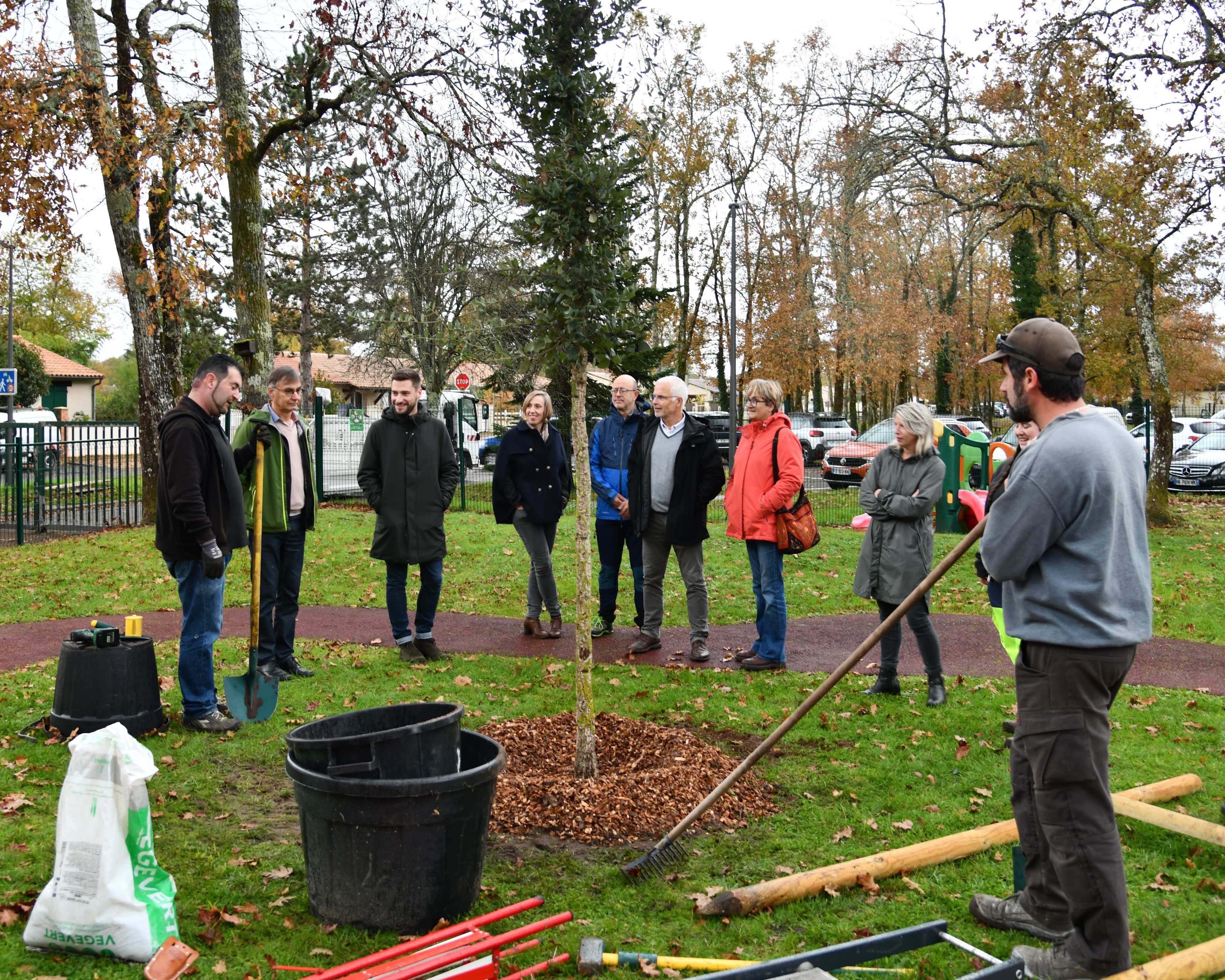Lundi matin, élus et agents se sont réunis pour planter un chêne-liège dans le jardin de la crèche Françoise-Dolto, à l'occasion de la Sainte-Catherine.