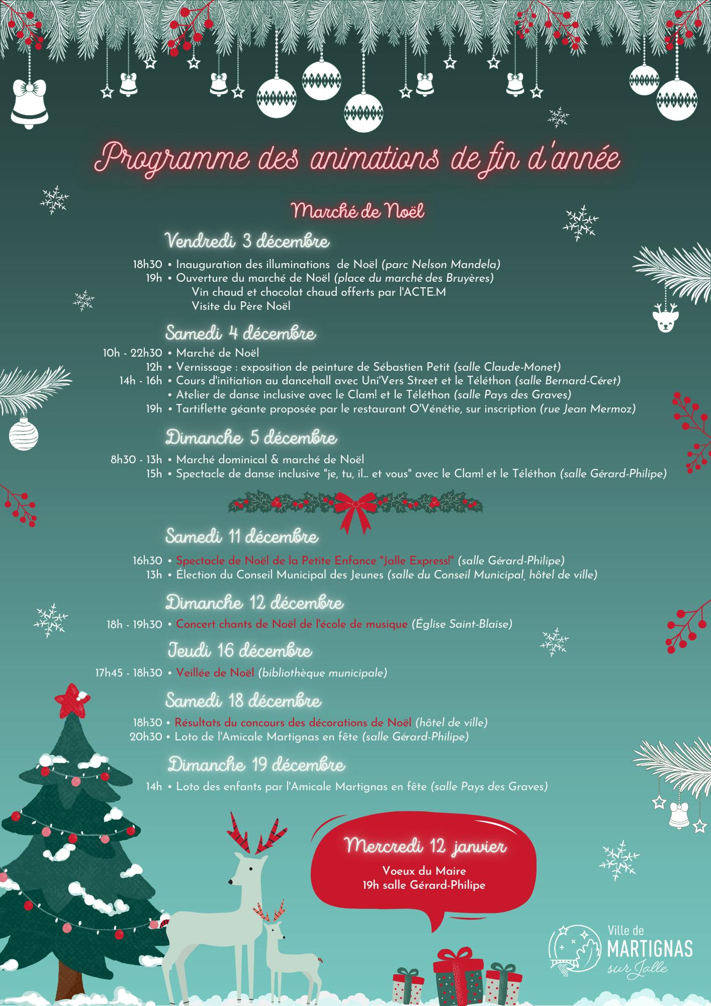 Ne manquez pas le programme des fêtes de fin d'année à Martignas !