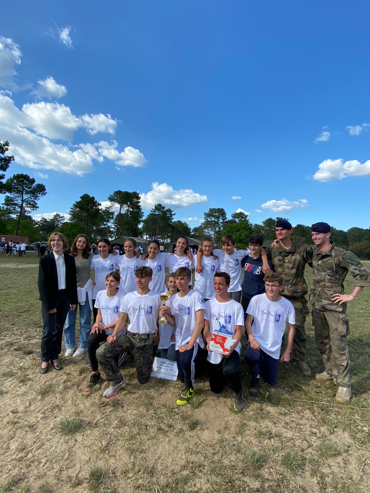 Félicitations aux élèves du collège Aliénor d'Aquitaine qui ont remporté le trophée du « Rallye citoyen », organisé sur le camp de Souge ce vendredi 6 mai !