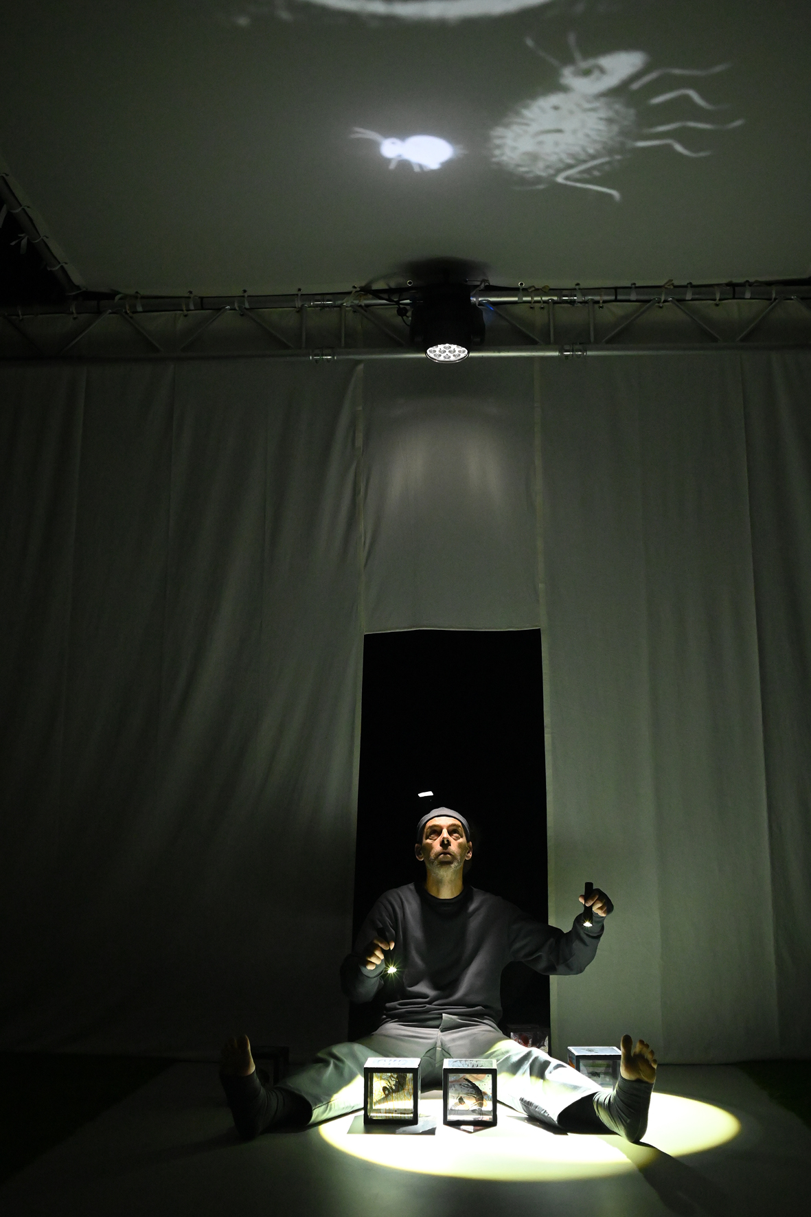 Minimus est une odyssée dans le monde du minuscule au coeur des collaborations qui font la force de notre écosystème, un zoom sur la biodiversité cachée nécessaire à l’équilibre du monde. Un manipulateur de sons et d’objets lumineux insolites nous accueille au sein d’un espace coloré et sonore, doux et enveloppant.