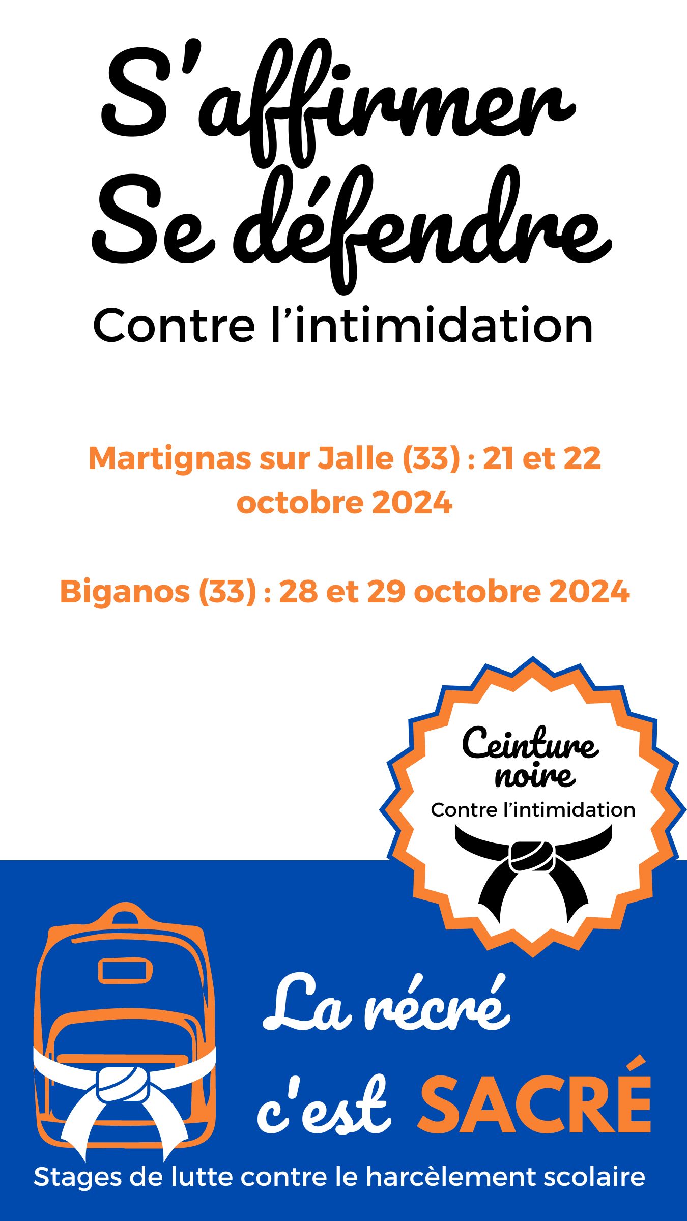 Et aussi des stages de self defense, lutte contre le harcèlement scolaire ! 🎒🥋