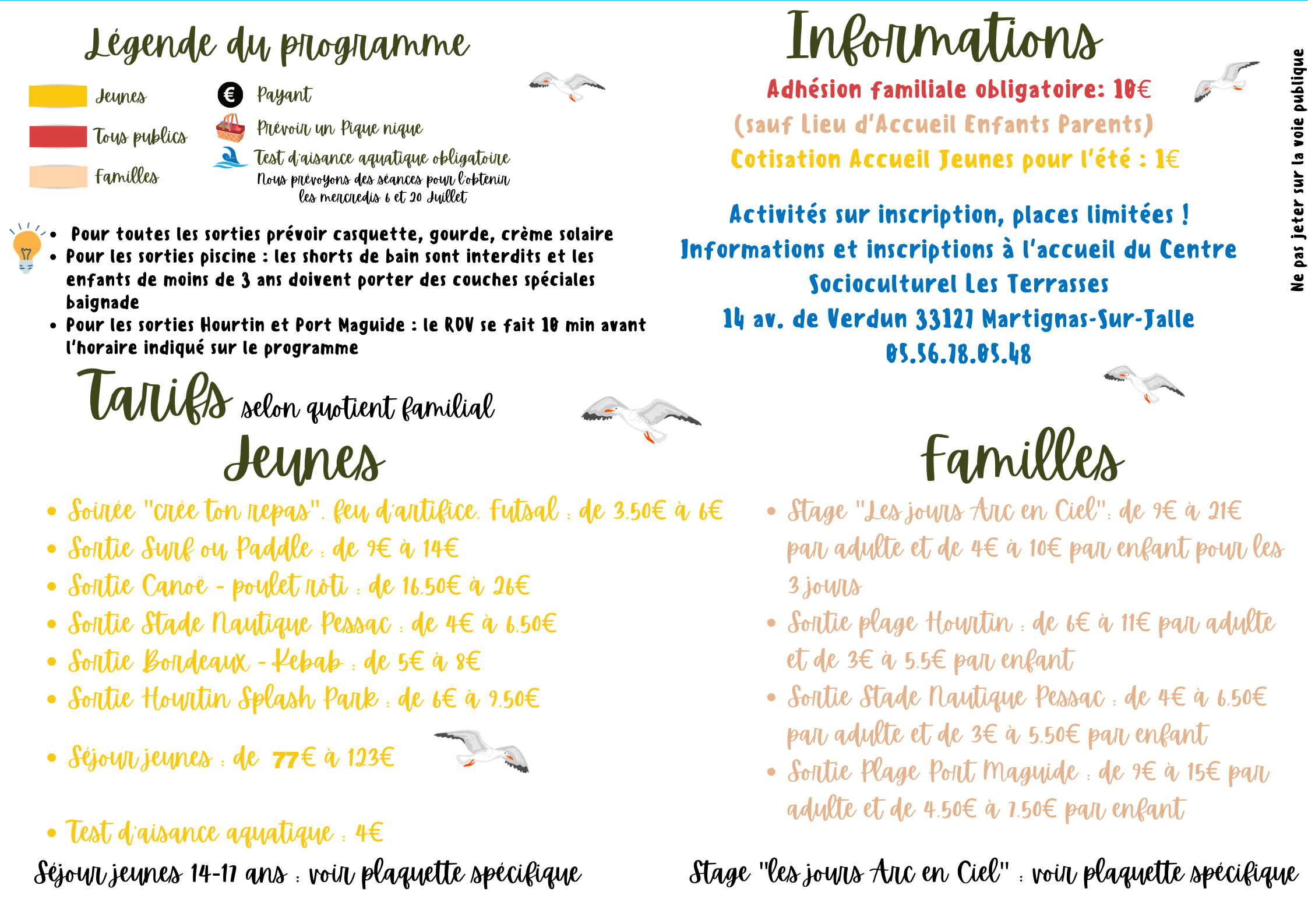 Activités sur inscription, places limitées !